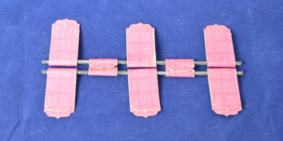 12. Glue the two smaller hinges in place to join both skewers together. It doesn't matter if they become fixed to the skewers in the gluing process. Put the assembly to one side to dry while you cover the covers.